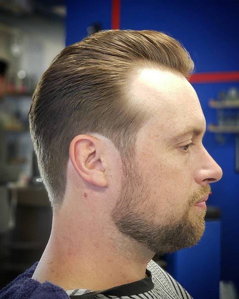 A long slicked back top and bald sides are excellent to have a street style strong look. Anyone can get this hairstyle and it is extremely easy to maintain.