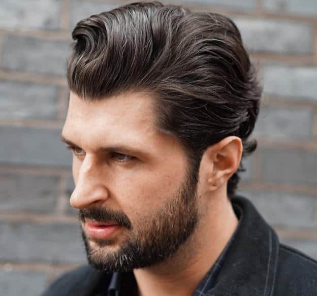 If you want to modernize your classic slicked-back hairstyle, add a pompadour. Pompadours are trendy and cool.
